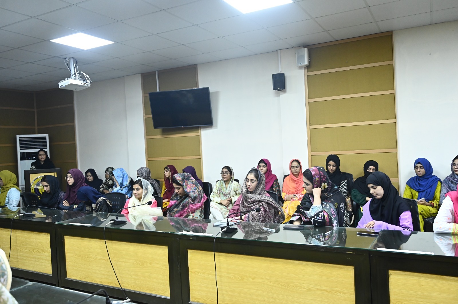 Awareness Session on Skill Development & Youth Pitch Competition at GCWUFFaisalabad (September 18, 2025) — The Women Development and Mentoring Centre, Government College Women University Faisalabad (GCWUF), in collaboration with the Women Development Department (WDD), Government of the Punjab, organized an awareness session on “Skill Development through Ambassador Program and Entrepreneurial Female Youth Pitch Competition.”The program opened with the Recitation from the Holy Quran, Naat, and the National Anthem, followed by keynote addresses from WDD representatives Mr. Faheem Akhtar (Manager – Projects/Initiatives, SPIU) and Mr. Mazhar Ali (Gender Monitoring Specialist). Both speakers underscored the initiatives’ objectives, benefits, and application process, stressing their importance for women’s empowerment, leadership, and entrepreneurial growth.On behalf of Dr. Sadaf Naqvi, In-charge Women Development and Mentoring Centre, the session was moderated by Dr. Saira, Assistant Professor, Department of English, who also presented souvenirs to the distinguished guests.The event concluded with an interactive discussion, reaffirming GCWUF’s commitment to nurturing innovation, entrepreneurship, and skill development among its female students.