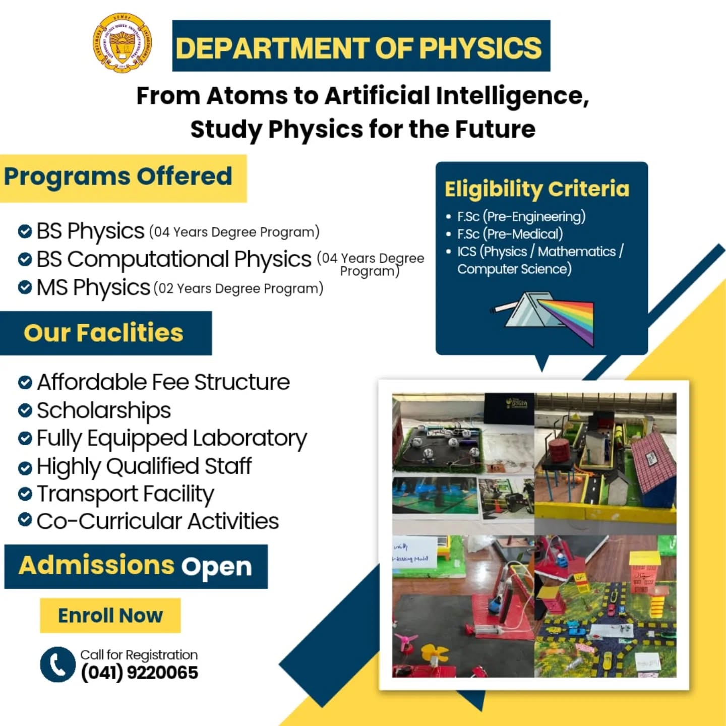 Admissions Open Department of Physics BS PhysicsBS Computational Physics MS Physics Apply Online