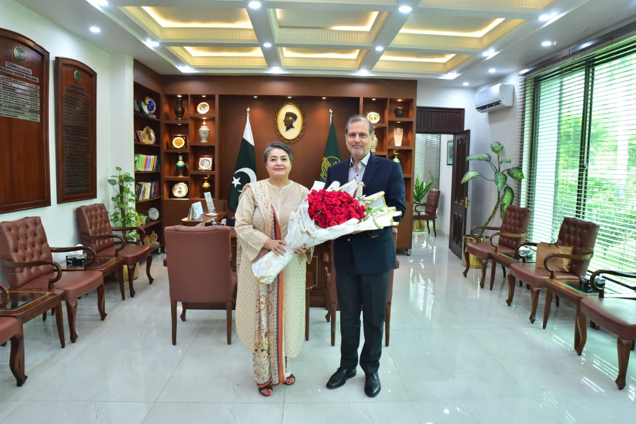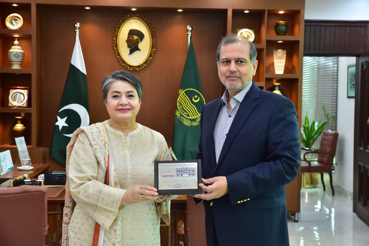 Partnership for Progress: GCWUF and Commissioner Faisalabad Align on Key InitiativesFaisalabad, October 01, 2025 — Prof. Dr. Kanwal Ameen (T.I.), Vice Chancellor of Government College Women University Faisalabad (GCWUF), called on Commissioner Faisalabad, Raja Jahangir Anwer, to congratulate him on assuming charge and to explore avenues of collaboration.Both leaders expressed their commitment to working together on student development opportunities, road improvement at the Main Campus, and provision of an access road to the New Campus, as well as joint environmental protection initiatives. The meeting reflected a shared vision to strengthen academia–administration linkages for the progress of the city and its youth.