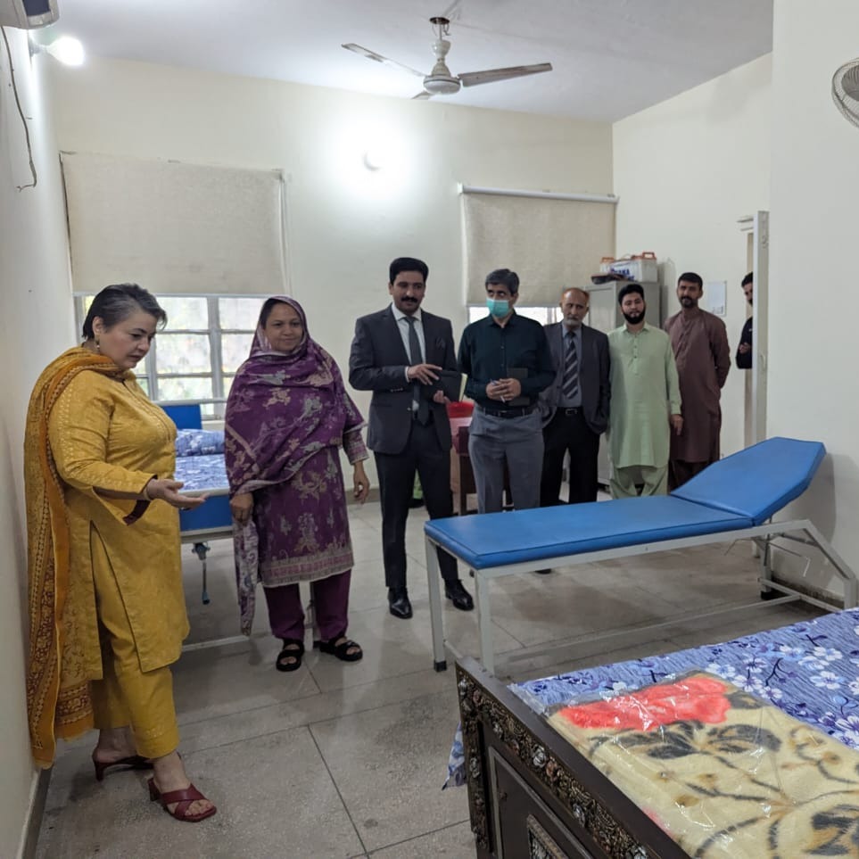 Vice Chancellor GCWUF Plans for a Holistic Health Unit for its Community.ÚFaisalabad, November 2025 — Prof. Dr. Kanwal Ameen (T.I.), Vice Chancellor, Government College Women University Faisalabad, conducted a visit to review the University’s Health Unit building for establishing an integrated physical and mental wellness facility for all. ÚAccompanied by Chief Engineer Mr. Muhammad Tayyab Asif and his technical team, Dr. Ameen assessed the building’s layout and directed immediate steps to upgrade it.ÚShe emphasized that the initiative reflects GCWUF’s commitment to providing quality services for overall wellness.