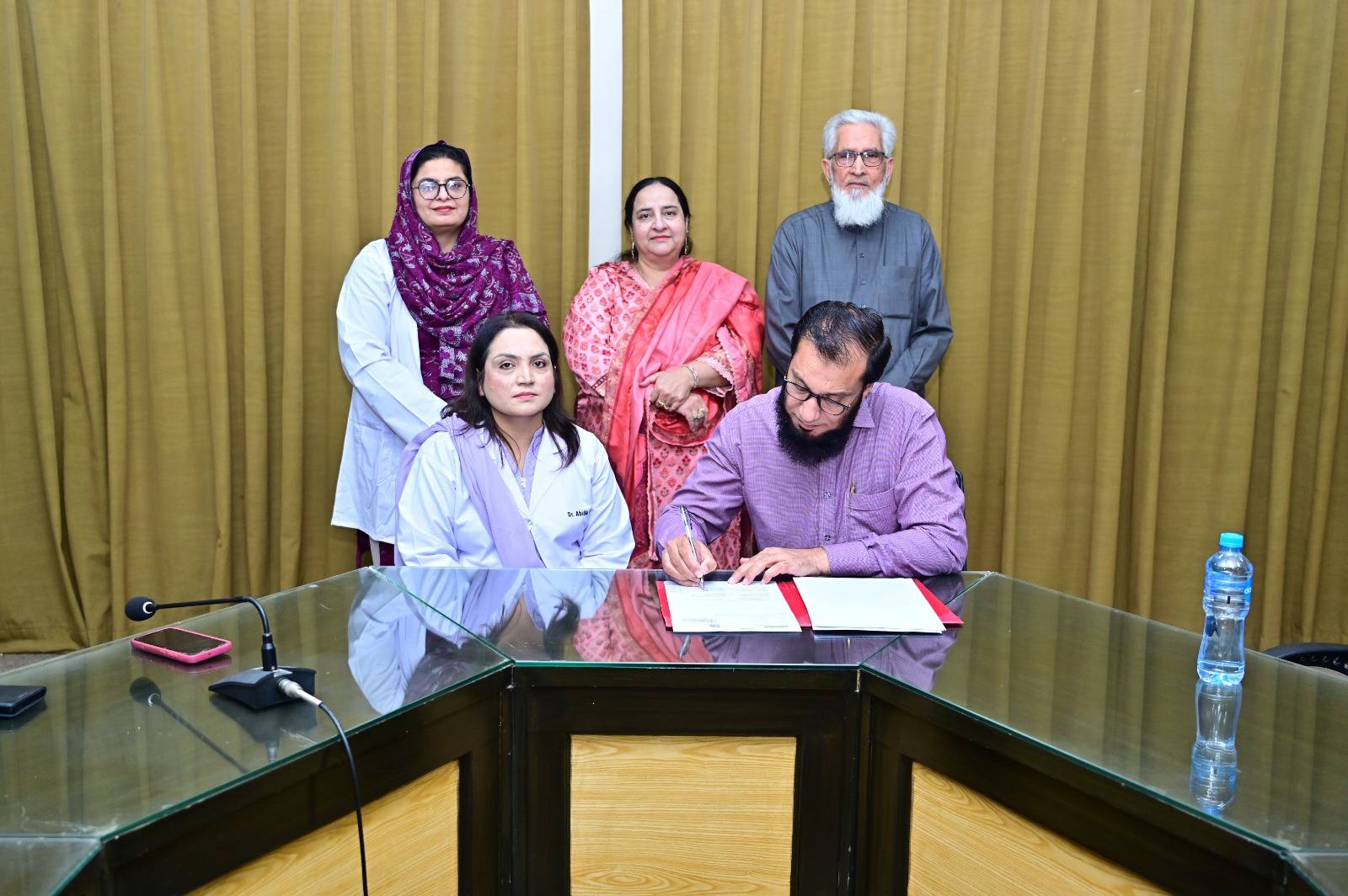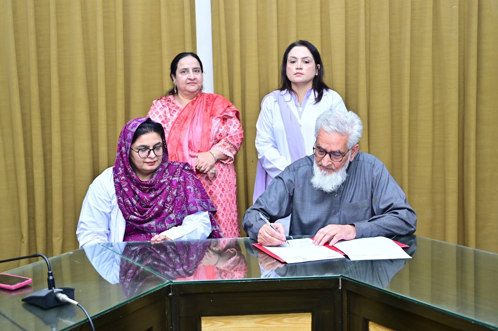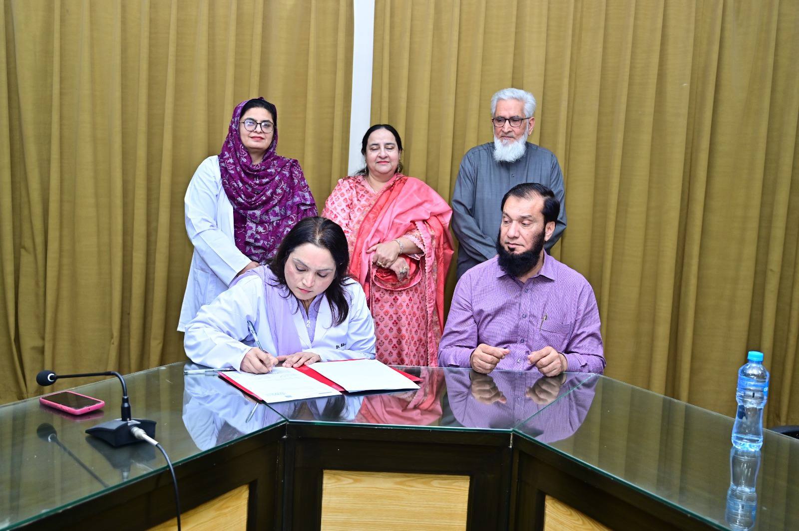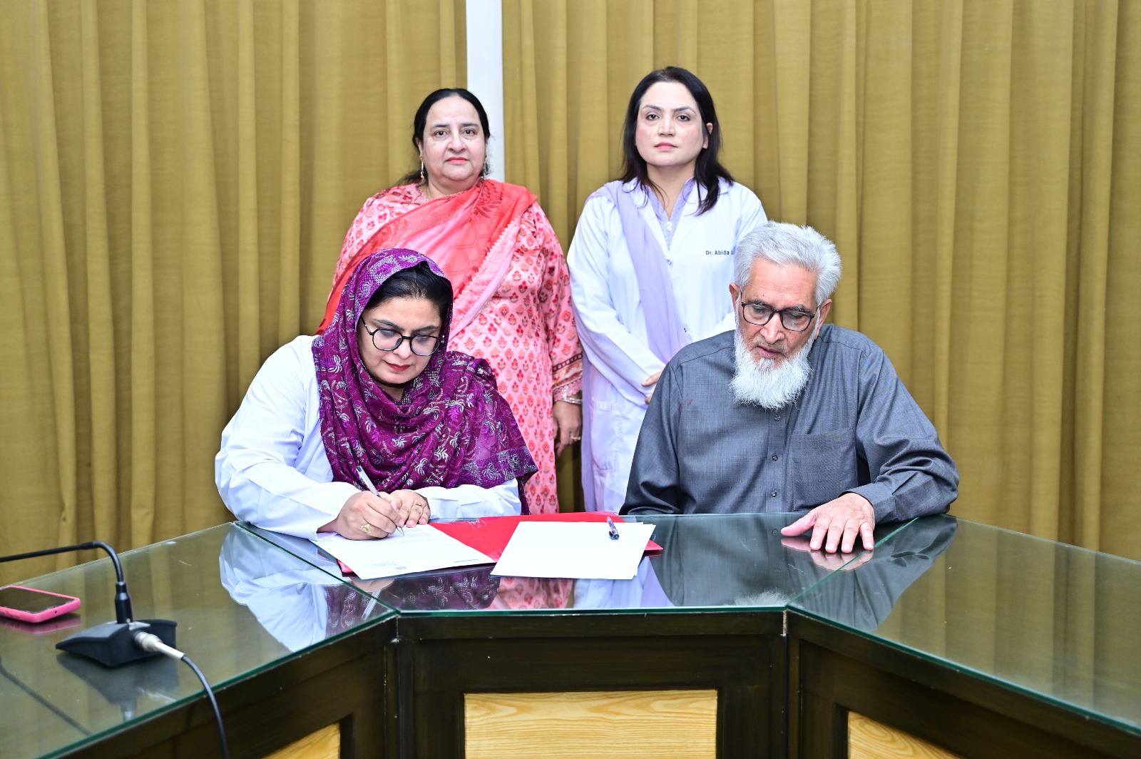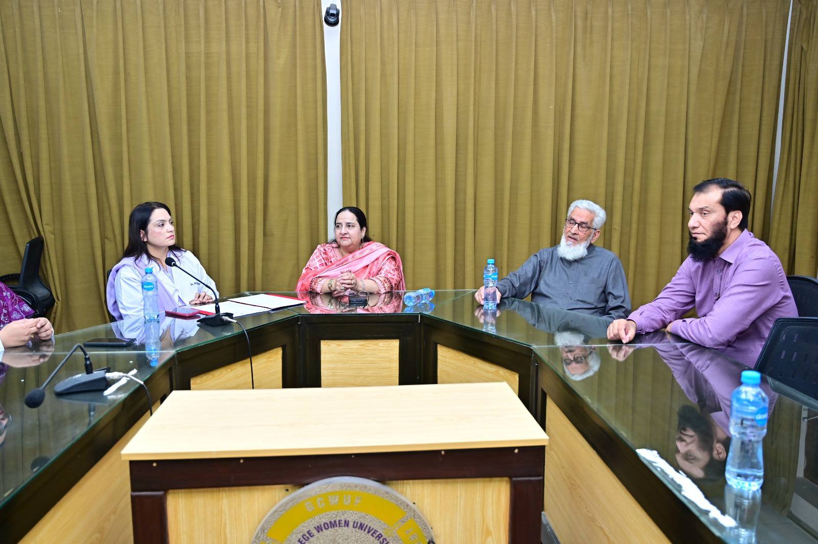 MoU Signed Between GCWUF and Saffron Pharmaceutical IndustryÚFaisalabad, November 2025 — The Department of Chemistry has recently signed a Memorandum of Understanding with Saffron Pharmaceutical Industry Faisalabad, marking a new phase of collaboration between the university and industry.ÚThe agreement aims to provide Chemistry students of Government College Women University Faisalabad with industrial exposure, training sessions, internships, and research opportunities in pharmaceutical sciences. It also includes financial and technical support for academic and student development programs.ÚThe signing ceremony was attended by Prof. Dr. Zill-i-Huma, Coordinator of Science and Technology; Dr. Sadia Asim, Registrar of GCWUF; and Mr. Ghulam Dastaghir, Director of Marketing and Sales at Saffron Pharmaceuticals. Dr. Abida Kausar, Chairperson, Department of Chemistry, facilitated the collaboration, emphasizing that such partnerships bridge the gap between classroom learning and practical application while aligning academic programs with industry needs.