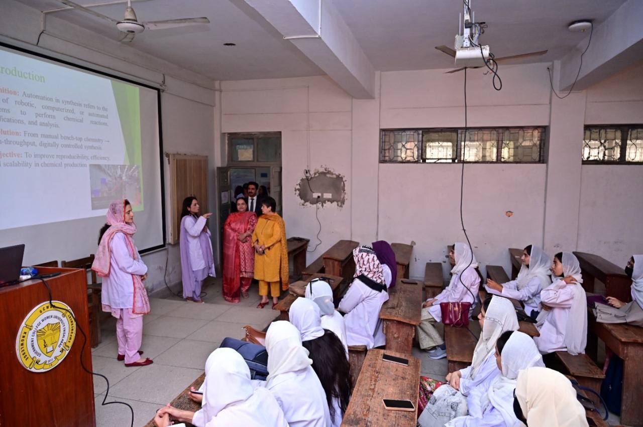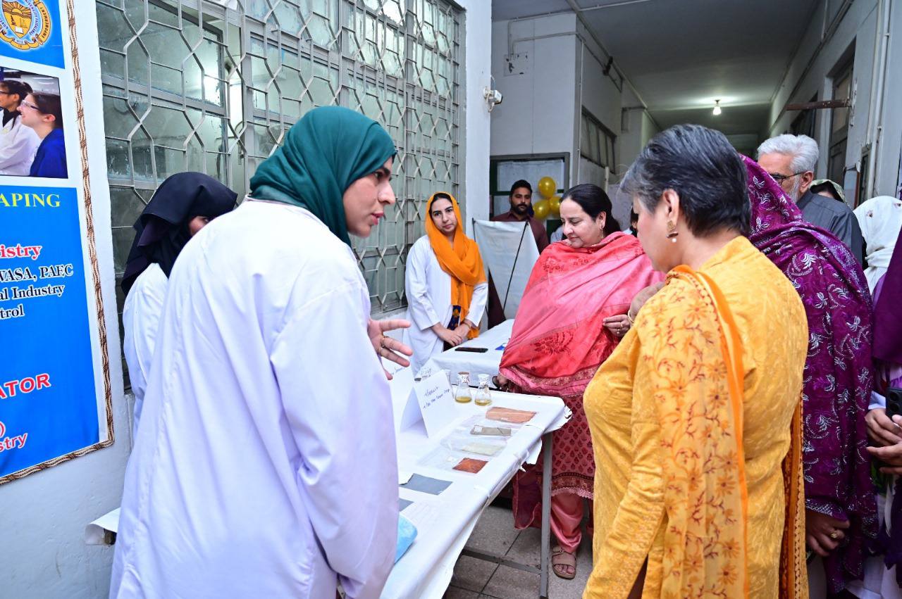 GCWUF Department of Chemistry Celebrates Science Day & Science Week 2025ÚFaisalabad, November 12, 2025 — The Department of Chemistry, Government College Women University Faisalabad, celebrated Science Day 2025 and Science Week (12–16 November) with the theme “Trust, Transformation, and Tomorrow: The Science We Need for 2050.” The event highlighted the role of science in innovation, sustainability, and future preparedness.ÚThe Honorable Vice Chancellor Prof. Dr. Kanwal Ameen (T.I.) inaugurated the celebration, appreciating the Department’s efforts to strengthen experiential learning and academia–industry linkages. She was accompanied by Dr. Zill-i-Huma Nazli, Coordinator, Science & Technology, and Dr. Sadia Asim, Registrar, GCWUF. Representatives from Saffron Pharmaceutical Industry, Faisalabad, also visited the student projects and praised their scientific potential.ÚA key feature of the event was a Chemistry Exhibition, where students showcased cosmetics, herbal soaps, lotions, creams, and eco-friendly paint dyes developed under the Industrial Chemistry-II practical course. Faculty, research scholars, and 5th-semester students collaborated on these market-relevant and sustainable formulations, reflecting strong applied learning practices at GCWUF.ÚAs part of Science Week, the Department launched hands-on training sessions in its laboratories, offering practical exposure to modern analytical instruments, calibration procedures, and research-based operations. The initiative aims to enhance students’ technical competence and better prepare them for careers in industry, research, and innovation.ÚThe celebration reinforced GCWUF’s commitment to promoting scientific literacy, innovation, and industry-aligned skill development among young chemists.