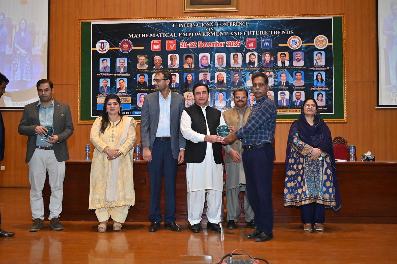 ICMEFT-2025 Day-2 Highlights: ÚFaisalabad, November 21, 2025 — The second day of the International Conference on Mathematics, Engineering, and Future Technologies (ICMEFT-2025) was held at Quaid-i-Azam Campus, Government College University Faisalabad (GCUF), showcasing strong academic collaboration between GCWUF and GCUF.ÚThe session was graced by Prof. Dr. Nasir Ameen, Pro Vice Chancellor GCUF, as Chief Guest, accompanied by Prof. Dr. Muhammad Kaleem Khosa, Dean Faculty of Physical Sciences, and Prof. Dr. Farhat Jabeen, Dean Faculty of Life Sciences. National keynote speaker Prof. Dr. Muhammad Azad from NUST Islamabad also joined the proceedings.ÚIn their remarks, the distinguished guests praised the active engagement of young researchers and the consistent accomplishments of the Mathematics Departments of both universities. Prof. Dr. Nasir Ameen commended the joint academic efforts of GCWUF and GCUF, acknowledging the leadership of Prof. Dr. Saima Akram (GCWUF)—Chief Organizer, Prof. Dr. Imran Chaudhary (GCUF)—Principal Organizer, and Prof. Dr. Mohsin Raza (GCUF)—Conference Convener. He highlighted Mathematics as a driving force for national economic strength and future technological advancement.ÚDay 2 featured three parallel scientific sessions with 45 research presentations, promoting rigorous academic exchange and offering valuable insights into emerging research trends in Mathematics.