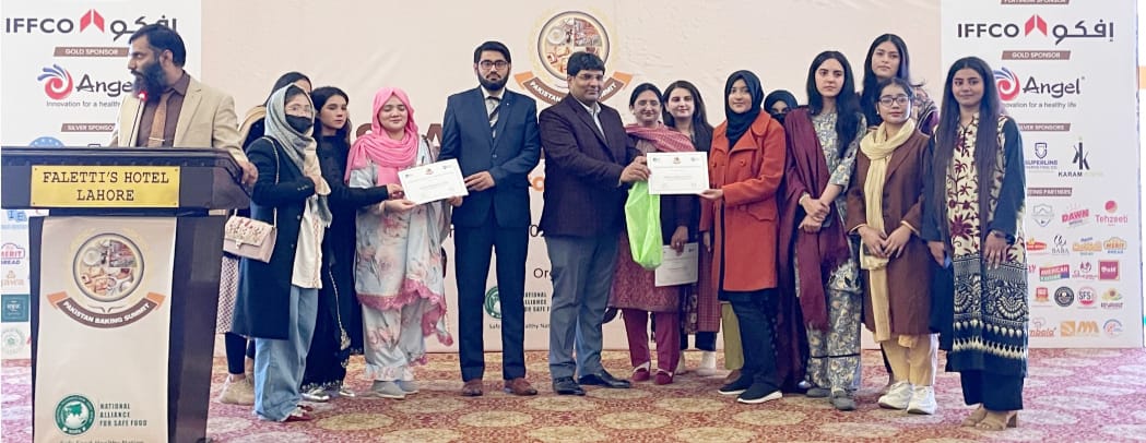 GCWUF Secures 2nd Position at Pakistan Baking Summit & Expo 2025ÚStudents of the Department of Food Science & Technology, GCWUF, under the leadership of Prof. Dr. Aysha Sameen (Chairperson), secured 2nd Position in the Inter-University Baking Product Development Competition held on December 11, 2025, at Faletti’s Hotel, Lahore.ÚThe team showcased outstanding innovation and technical skill. Uswa Amir (5th Semester) stood out with her creatively formulated Beetroot Loaf, which received special appreciation from the judges for its scientific strength and presentation.ÚGuided by Dr. Rizwana Batool and Ms. Momna Maryum, the students’ success reflects the department’s strong focus on excellence and innovation in modern food science.