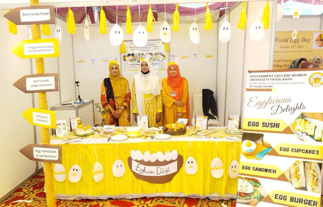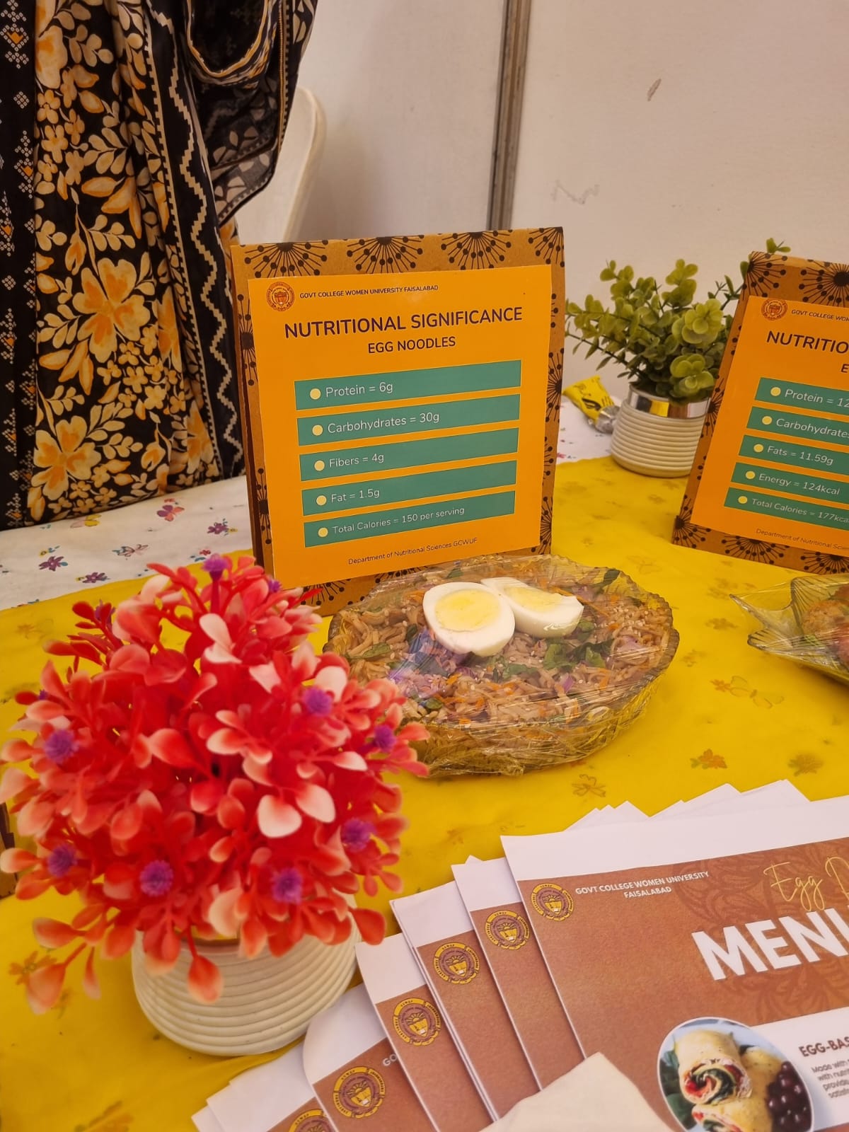 Under the visionary leadership of Prof. Dr. Kanwal Ameen, Worthy Vice Chancellor, GCWUF, and the supervision of Head of Department, Dr. Madiha Ilyas, the Department of Nutritional Sciences, proudly secured the 2nd Position and a cash prize of Rs. 30,000 at the World Egg Day Celebration 2025 held on October 10, 2025, at the University of Kamalia Students, accompanied by faculty members, Ms. Amna Saleem and Ms. Hina Rasheed showcased their culinary innovation in an inter-university egg-based cooking competition, featuring teams from more than ten institutions, University of Okara, University of Jhang, GCU Faisalabad, NTU, Faisalabad and others. Students' nutritious, protein-rich dishes and creative presentation earned high praise from the judges, bringing honour and recognition to the University. The celebration not only highlighted the versatility and nutritional importance of eggs but also reflected the Department???s commitment to promoting balanced, protein-rich dietary practices. The Department extends sincere gratitude to Prof. Dr. Kanwal Ameen, Worthy Vice Chancellor, for providing this valuable opportunity and for her continuous encouragement to students and faculty.
