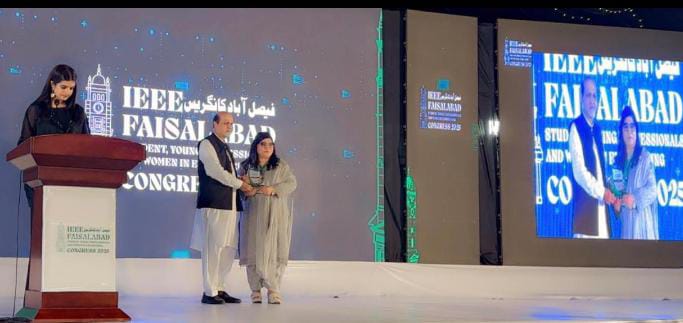 GCWUF Grabs Top Honors at IEEE Faisalabad Congress 2025Faisalabad, October 4, 2025 – Government College Women University Faisalabad (GCWUF) achieved remarkable distinction at the IEEE Faisalabad Student, Young Professionals & Women in Engineering Congress 2025, held at Sitara Marquee, Civic Center, Faisalabad.Prof. Dr. Kanwal Ameen (T.I.), Vice Chancellor GCWUF, graced the event as Chief Guest and panelist in the Vice Chancellors’ Panel Discussion, where she shared impactful insights on academic leadership in the digital era and underscored the vital role of women in driving technological advancement. Her address received wide appreciation from participants for its vision and inspiration.Prof. Dr. Saima Akram, Coordinator Faculty of Computing and Numerical Sciences, also participated as a guest speaker, delivering an inspiring talk.GCWUF emerged as a leading institution of the congress, earning the “Best University Participant Award” and the “Best Collaborative Partner of IEEE Award.” Students from the Department of Computer Science further brought pride to the university by securing 1st and 3rd positions in IEEE competitions, reflecting their exceptional skill, innovation, and commitment to excellence.The congress, organized by IEEE Faisalabad Subsection in collaboration with IEEE Lahore Section, brought together over 2,000 participants from academia and industry to celebrate leadership, innovation, and women’s empowerment in technology.Prominent GCWUF faculty members — Dr. Shazia Riaz, Ms. Ammarah Maqbool, Ms. Sadia Riaz, and Dr. Amara Javed — played pivotal roles in organizing and representing the university, reaffirming GCWUF’s strong footprint in academic collaboration, innovation, and women’s leadership in STEM.