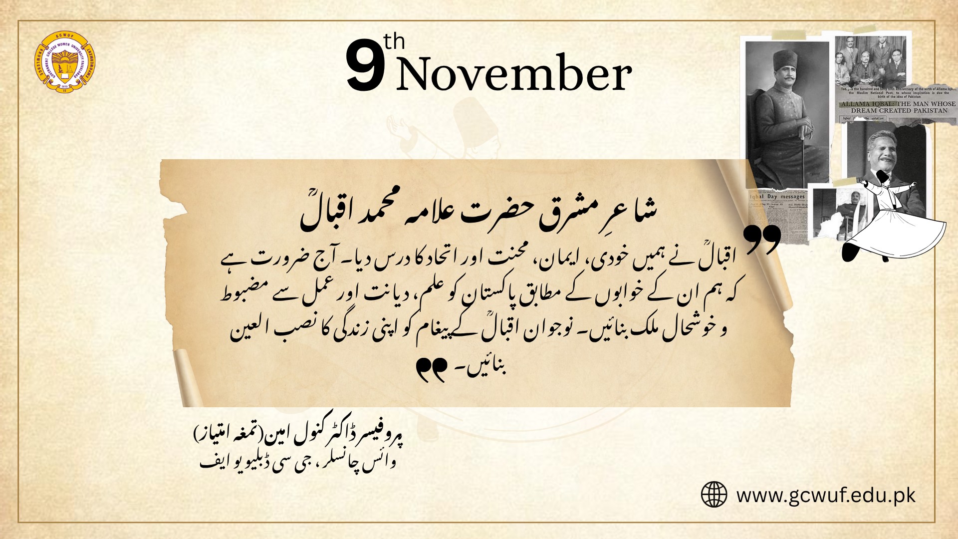 Exclusive message by the Vice Chancellor GCWUF Prof. Dr. Kanwal Ameen (T.I.) on this Iqbal Day,ÚNovember 09, 2025