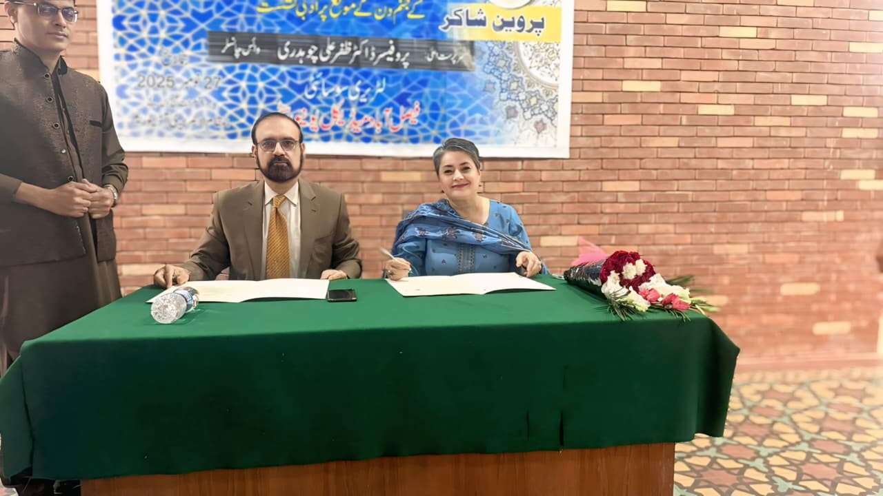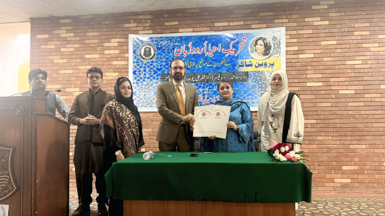 GCWUF Signs MoU with Faisalabad Medical University to Enhance Clinical Training for Allied Health Sciences StudentsฺFAISALABAD โ Prof. Dr. Kanwal Ameen (T.I.), Vice Chancellor GCWUF, and Prof. Dr. Zafar Ali Ch., Vice Chancellor FMU, signed a Memorandum of Understanding (MoU) between Government College Women University Faisalabad (GCWUF) and Faisalabad Medical University (FMU) to strengthen practical training and clinical exposure for students of the Department of Allied Health Sciences. The agreement reaffirms the shared vision of both institutions to advance quality healthcare education. Under the MoU, MLT students of GCWUF will receive hands-on laboratory training and clinical practice at FMU and its affiliated hospitals, helping to bridge academic learning with real-world clinical experience and equipping students with essential skills for success in medical diagnostics.