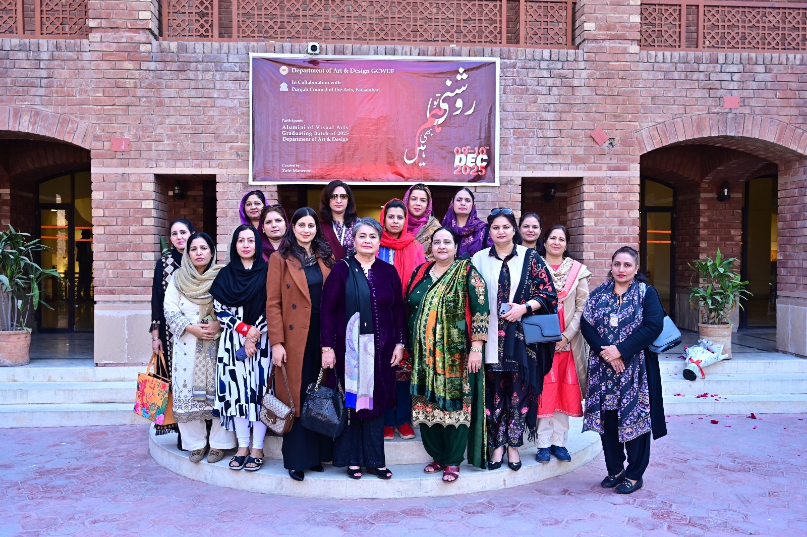 GCWUF Alumni Art Exhibition โRoshani to Hum bhi Hainโ Showcases Creative Excellence of Emerging Women ArtistsฺFAISALABAD, December 9, 2025 โ Commissioner Faisalabad Raja Jahangir Anwar along with Prof. Dr. Kanwal Ameen (T.I.), Vice Chancellor GCWUF, inaugurated an inspiring two-day alumni group show titled โRoshani to Hum bhi Hainโ, featuring selected works of female visual artists from the pass-out batches of 2019โ2025. The exhibition, held in collaboration with the Punjab Council of the Arts, Faisalabad, highlighted a diverse range of contemporary themes and creative expressions by GCWUFโs emerging women artists. ฺSpeaking at the occasion, Prof. Dr. Kanwal Ameen expressed her appreciation for the exceptional creative talent of GCWUF alumni and emphasized the importance of providing platforms that celebrate womenโs artistic contributions. She thanked the Punjab Council of the Arts for their valuable collaboration in promoting young women artists at a broader public forum.ฺAddressing the gathering, Commissioner Raja Jahangir Anwar commended the quality of the artwork displayed and acknowledged GCWUFโs significant role in strengthening Faisalabad'||chr(39)||'s cultural and creative landscape.ฺWelcoming the guests, Dr. Tuba Najam, Head of the Department of Art & Design, highlighted the departmentโs dedication to nurturing artistic innovation and professional growth among young women. The exhibition was thoughtfully curated by Ms. Zain Manzoor, showcasing works that explored identity, culture, social narratives, and modern visual forms. Ex-President of FWCCI, Mrs. Robina Amjad; Vice Chairman of PHMA, Mr. M. Afzal Awan; Director of Arts Council, Mr. Maqbool Malik; Director of FITFD, Ms. Tehmina Afzal; university coordinators; heads of academic departments; and a large number of students visited the exhibition and appreciated the students'||chr(39)||' artistic expressions. The exhibition will continue tomorrow also.