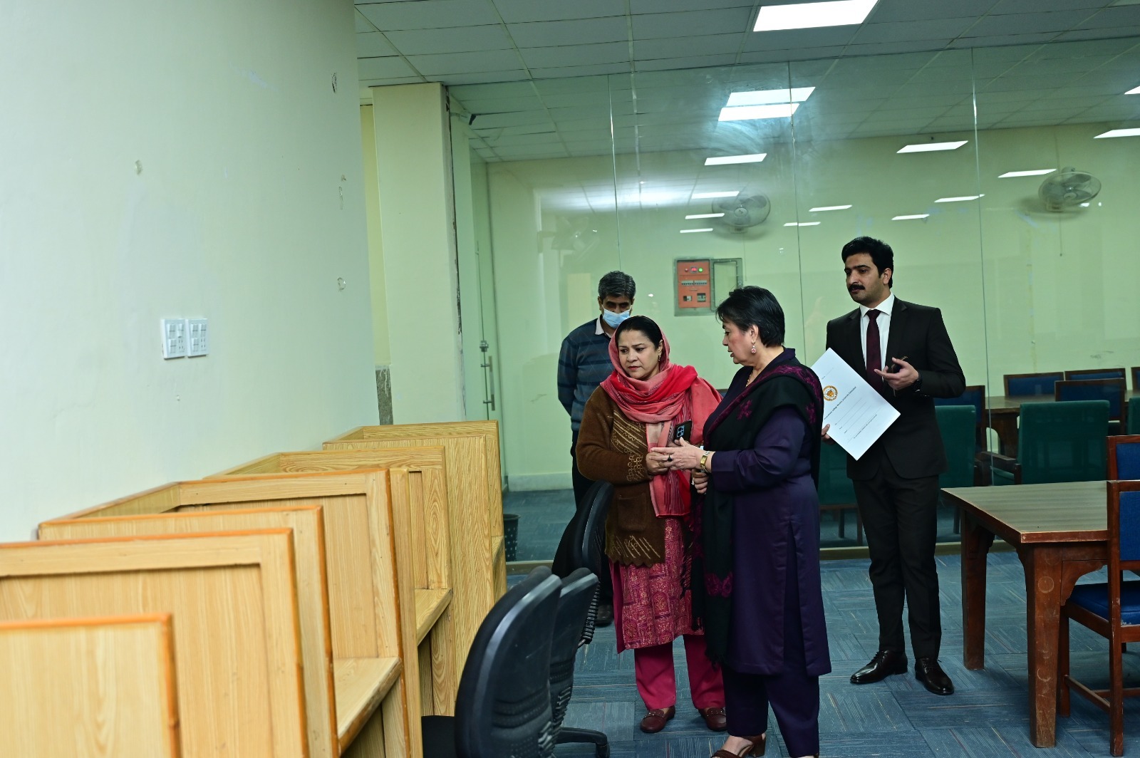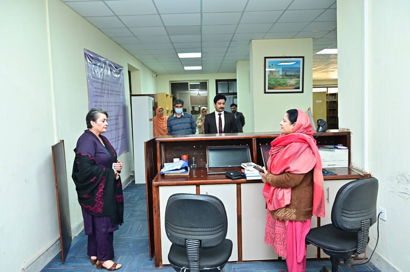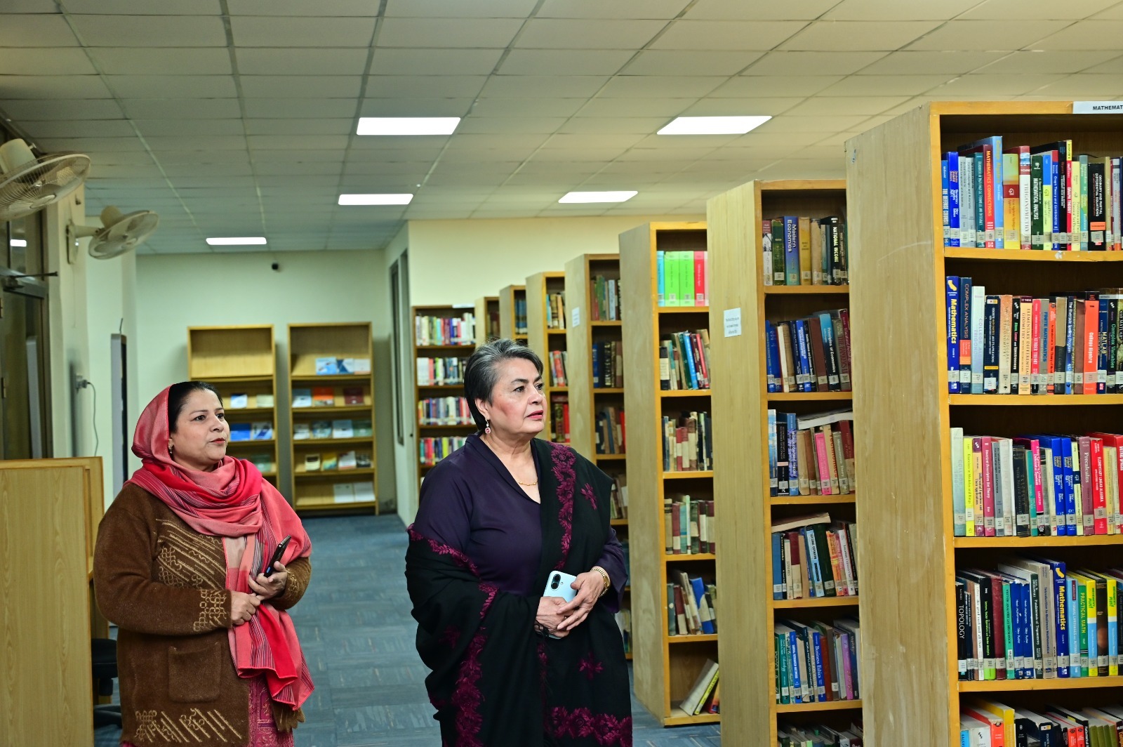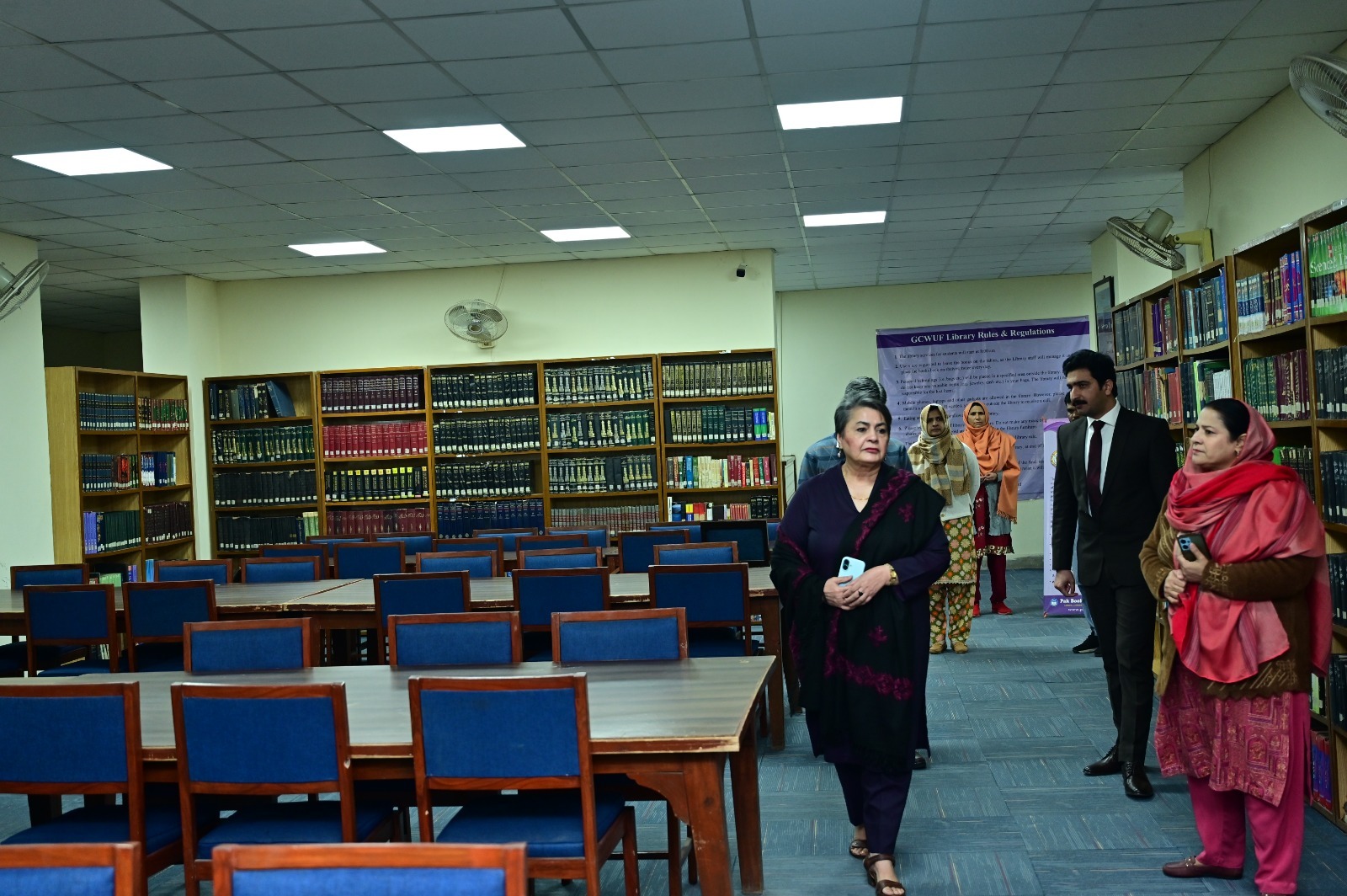 Vice Chancellor Visits Upgraded Learning Resource CenterÚVice Chancellor Prof. Dr. Kanwal Ameen (T.I.) visited the Learning Resource Center at GCWUF to review recently upgraded library facilities. She inspected key sections, including the Digital Library and Research Support & E-Resources, and was briefed on enhanced infrastructure, automation, and expanded access to e-databases.ÚAppreciating the LRC team, she emphasized need-based acquisitions, a balanced mix of print and e-resources, and investment in high-impact journals to further strengthen research and academic excellence.