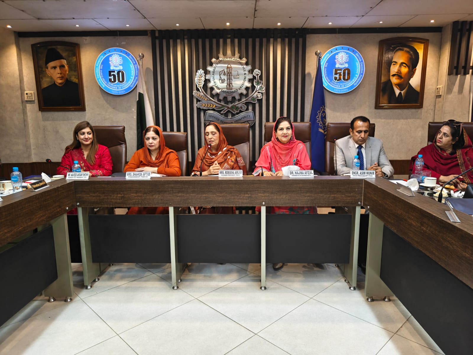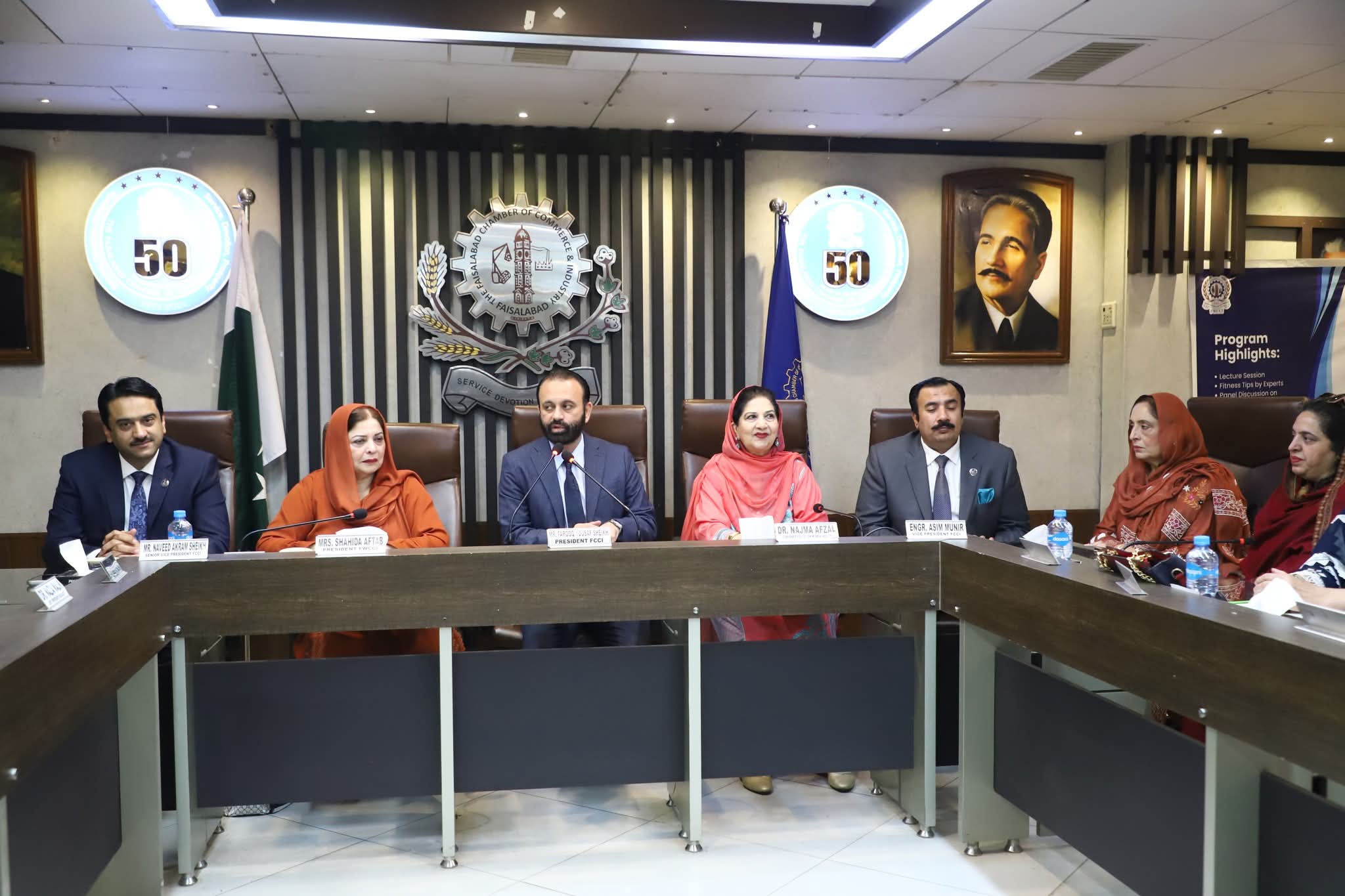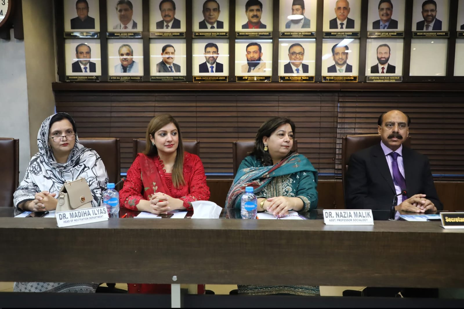 Dr. Madiha Ilyas, Head of Department, Nutritional Sciences, Government College Women University, Faisalabad, participated as Keynote Panelist at World Health Day Seminar on “Obesity and Physical Fitness”, organized by the Standing Health Committee of the Faisalabad Women Chamber of Commerce and Industry (FWCCI) and the Faisalabad Chamber of Commerce and Industry (FCCI) on 7th April 2026. During the expert panel discussion, she shared insightful views on the rising prevalence of obesity, its associated health risks, and evidence-based strategies for prevention and management. She particularly emphasized the importance of balanced nutrition, healthy dietary practices, regular physical activity, and long-term lifestyle modifications in addressing obesity and promoting overall well-being.The seminar brought together health professionals, academicians, industry representatives, and members of the community to raise awareness about the importance of physical fitness and healthy living. An awareness walk was also organized as part of the event to reinforce the message of adopting healthier lifestyles. The event successfully highlighted the urgent need to address obesity as a public health concern and encouraged collaborative efforts to build a healthier society